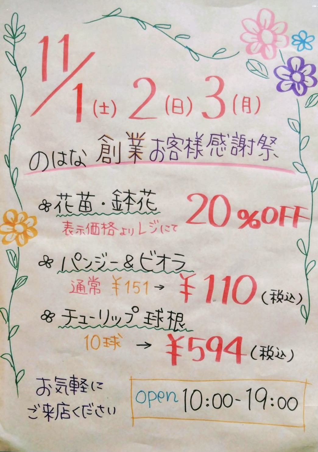 のはな、恒例の感謝祭が11/1から3日間の日程で開催いたします♪